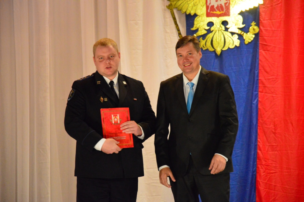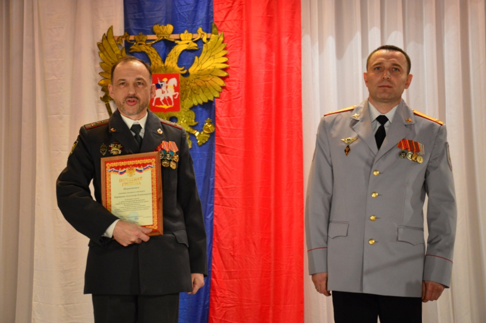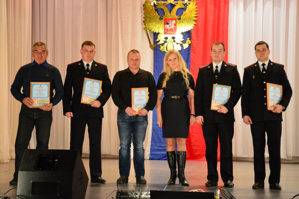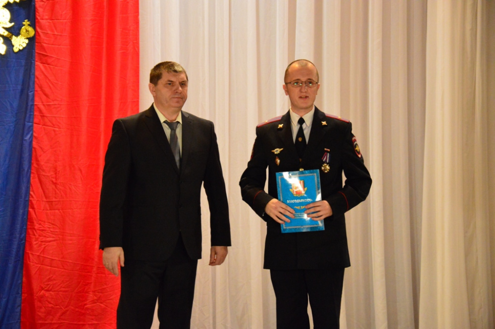 Глава района Евгений Киршин вручил Почётные грамоты и премии за добросовестный труд Алексею Шкерину, прапорщику полиции в отставке, Роману Губайдулину, старшему оперуполномоченному отдела уголовного розыска, майору полиции, Александру Скарлыгину, начальнику отдела Государственной инспекции безопасности дорожного движения, подполковнику полиции, Благодарности - Виталию Сысолятину, майору милиции в отставке, Павлу Данееву, участковому уполномоченному полиции отдела участковых уполномоченных полиции и по делам несовершеннолетних, лейтенанту полиции, Олегу Заруцкому, заместителю начальника следственного отдела, капитану юстиции.