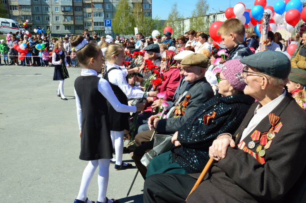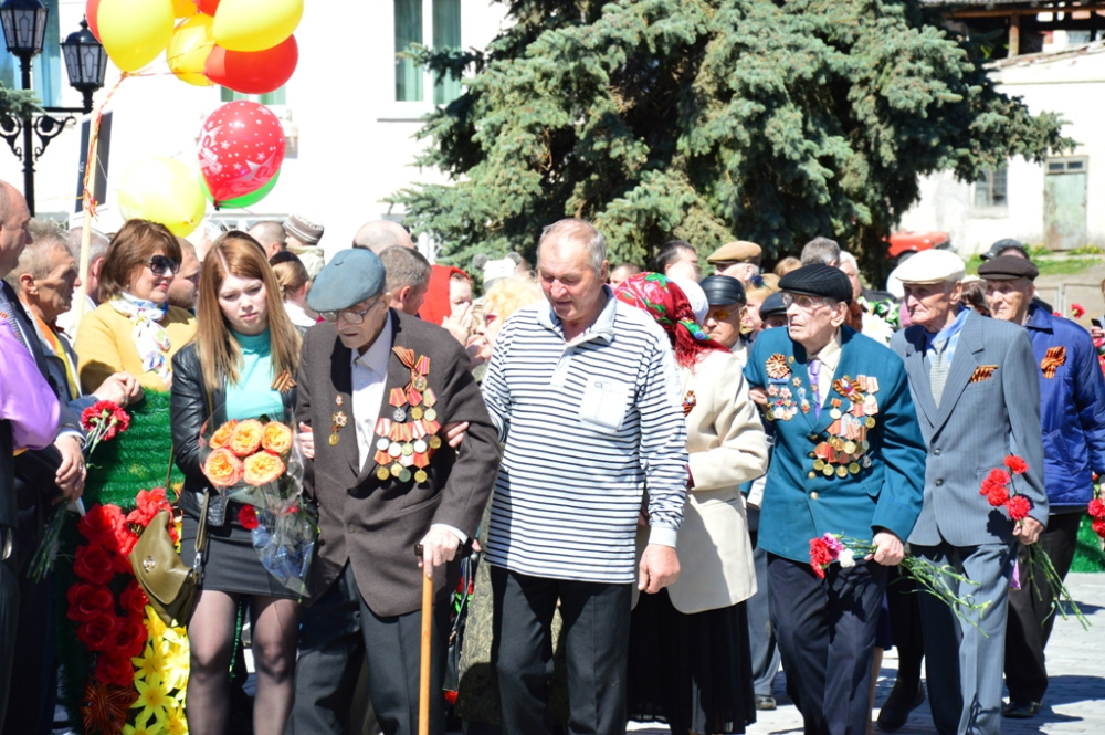 Жители от души поздравляли ветеранов, дарили им гвоздики и говорили слова благодарности.