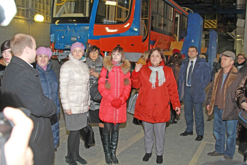 Каждый район, каждая территория старается показать собравшейся журналистской братии свои «изюминки». На сей раз ею стало посещение вагоностроительного завода имени С. Кирова. На предприятии выпускают современные трамвайные вагоны, в которых удобно могут расположиться и инвалиды, и мамочки с колясками. Для удобства пассажиров установлена комплексная цифровая информационная системы, в которую входит и электронное табло, и громкоговорители, и автоинформатор.