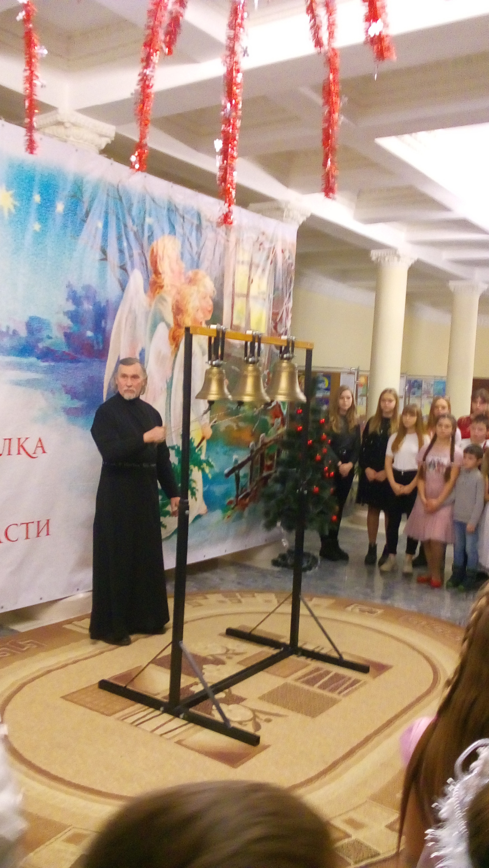 Сначала ребят встретил кукольный театр, маленькие актеры которого показали мини-постановку «Рождение Христа». Далее гостей праздника ожидал мастер-класс по «звонарному делу»: все желающие зрители могли попробовать себя в этом интересном деле. Но на этом сюрпризы не закончились: впереди всех ожидал рождественский «вертеп», артисты которого представили вниманию музыкальную версию чуда - рождения Христа.