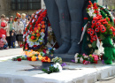 После концерта все дружно направились возлагать цветы и венки к монументу Неизвестного солдата, где у Вечного огня несли караул активисты учебных заведений. Первыми по традиции дань уважения подвигу советского народа отдали ветераны, у подножия памятника легли алые гвоздики… Абсолютно все трудовые коллективы оформили красивые венки с памятными лентам либо букеты. Мраморный квадрат постамента буквально утопал в ярких красках цветов, которые как символ передают наши трепетные биения сердец: «Победа нам дорога,