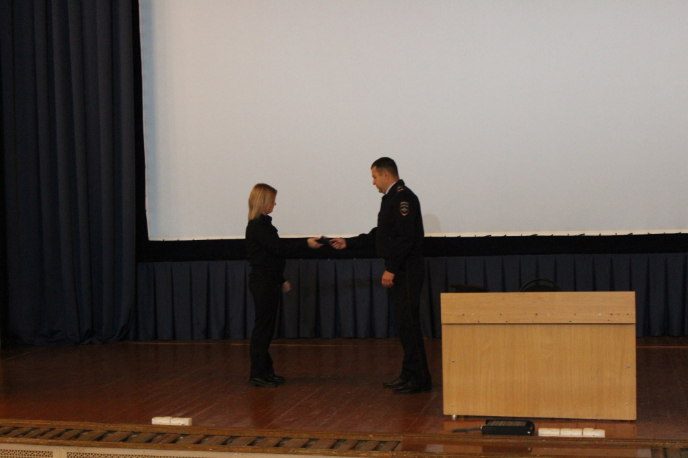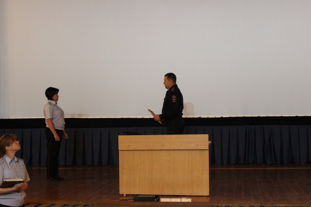 В торжественной обстановке на сцене досугового центра «Октябрь» заместитель начальника-начальник полиции ОМВД России по Катав-Ивановскому району подполковник полиции Антон Леонтьев вручил первое специальное звание «младший лейтенант полиции» участковому уполномоченному полиции отделения полиции «Юрюзанское» ОМВД России по Катав-Ивановскому району Чеченевой Александре.
