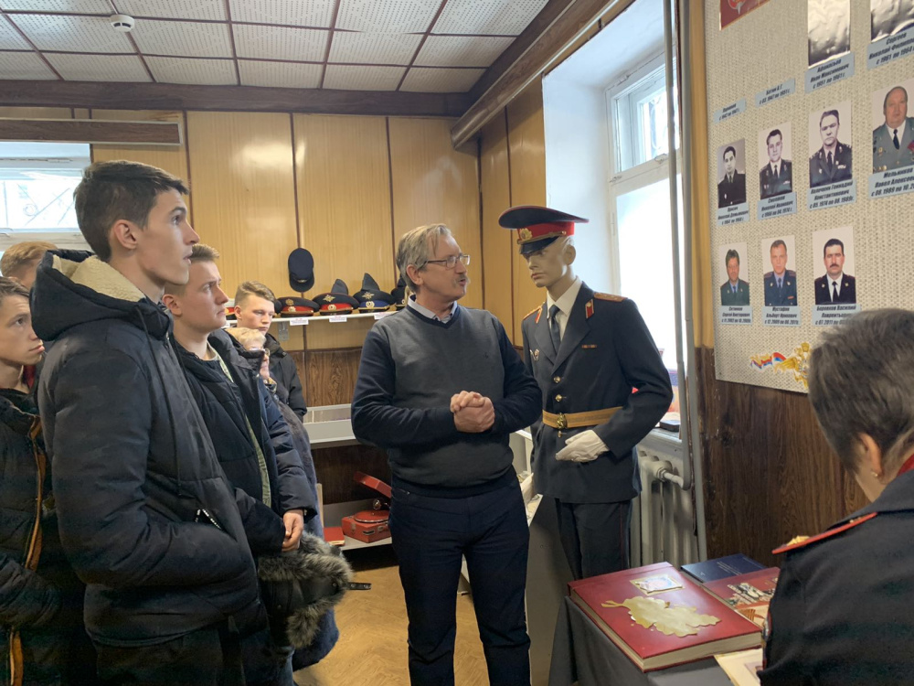 Гости с интересом рассматривали форменное обмундирование сотрудников разных лет, награды, исторические фотографии и документы, рассказывающие о тех, кто стоял у истоков создания полиции, и тех, кто поддерживает правопорядок сегодня. Также в ходе визита в музей у студентов была возможность узнать о земляках, погибших при исполнении служебного долга в «горячих точках», в мирное время, а также о том, какую работу сегодня проводят представители ветеранской организации, чтобы увековечить память о погибших бойцах и офицерах. Особое внимание у ребят вызвали специальные средства, стоящие на вооружении МВД, полицейская и милицейская форма.