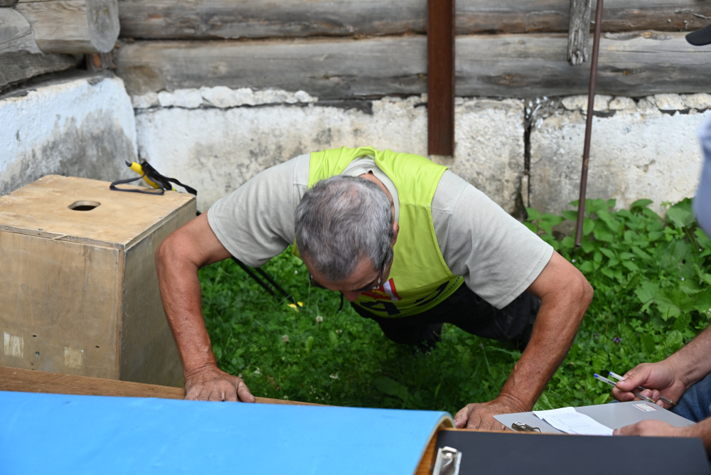 По нормам ГТО участники сдавали четыре вида упражнений для своего возраста: скандинавская ходьба, подъем туловища из положения лежа, сгибание-разгибание рук, наклоны на гибкость.