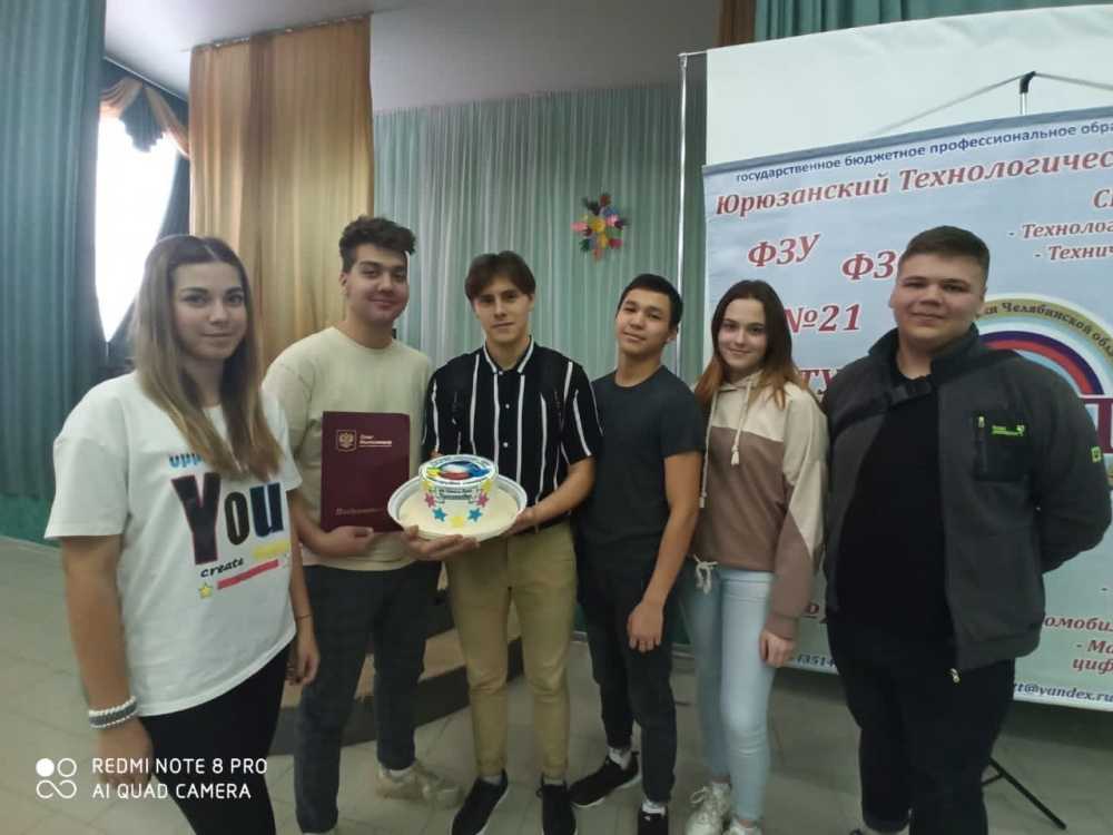 Команда весёлых и находчивых «Мясорубка юмора» из Юрюзанского технологического техникума с успехом вошла в сезон лиги КВН-2019 Катав-Ивановского района, покорив сердца зрителей, болельщиков и жюри. В новом сезоне КВН в связи с «коронным» периодом входит в онлайн-формат. Но на международный день КВН пандемия как обстоятельство не повлияла, и участники этой игры с удовольствием принимали поздравления. Нашу муниципальную команду приветствовали депутат Государственной Думы Олег Колесников и депутат Законодательного Собрания Лена Колесникова. Они прислали ребятам Поздравительный адрес и авторский торт.
