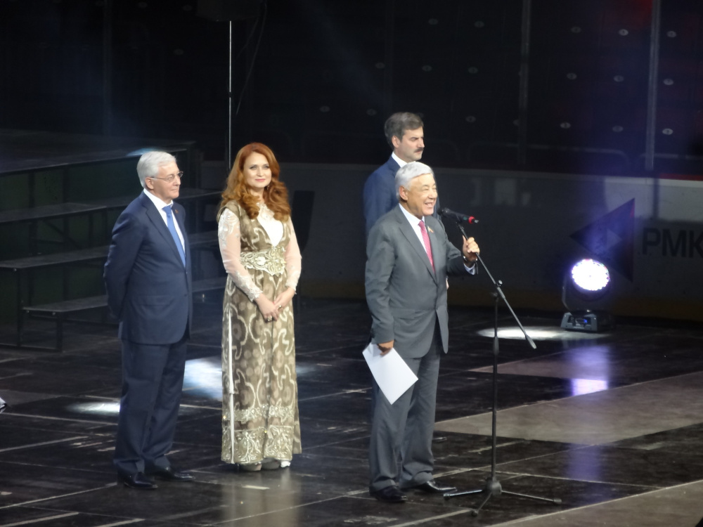На праздник прибыли почётные гости, по поручению Президента Республики Татарстан с яркой приветственной речью и официальным обращением от Рустама Минниханова выступил председатель Госсовета Фарид Мухаметшин. Его речь была искромётной и образной, он сравнил многонациональную Россию с букетом, одним из цветков которого является Татарстан и его дружелюбные жители. Фарид Хайруллович обратился к публике и участницам финального торжества с особым почтением, которое присуще только настоящим мудрецам и профессиональным ораторам. Он обаял всю семитысячную аудиторию, а Почётное приветствие передал Лене Колесниковой. Она говорила со сцены на татарском и русском языках, подчёркивая давнее единство народов. Да и большая её семья - пример тому, как нужно строить счастье, как нужно оставаться красивой женщиной, которой восхищаются не только родные и близкие, но и коллеги, друзья, земляки, - это большое искусство, талант. И при этом Лена всегда открыта, внимательна к людям, старается сохранять и развивать лучшие традиции татарского народа, организуя грандиозные шоу.