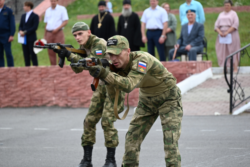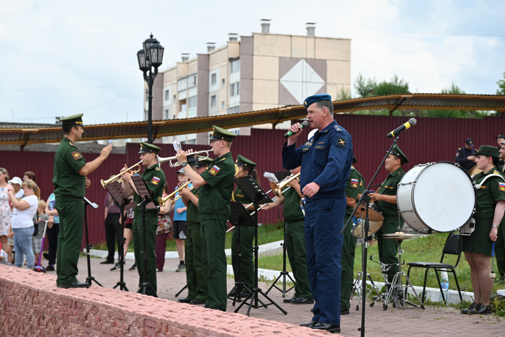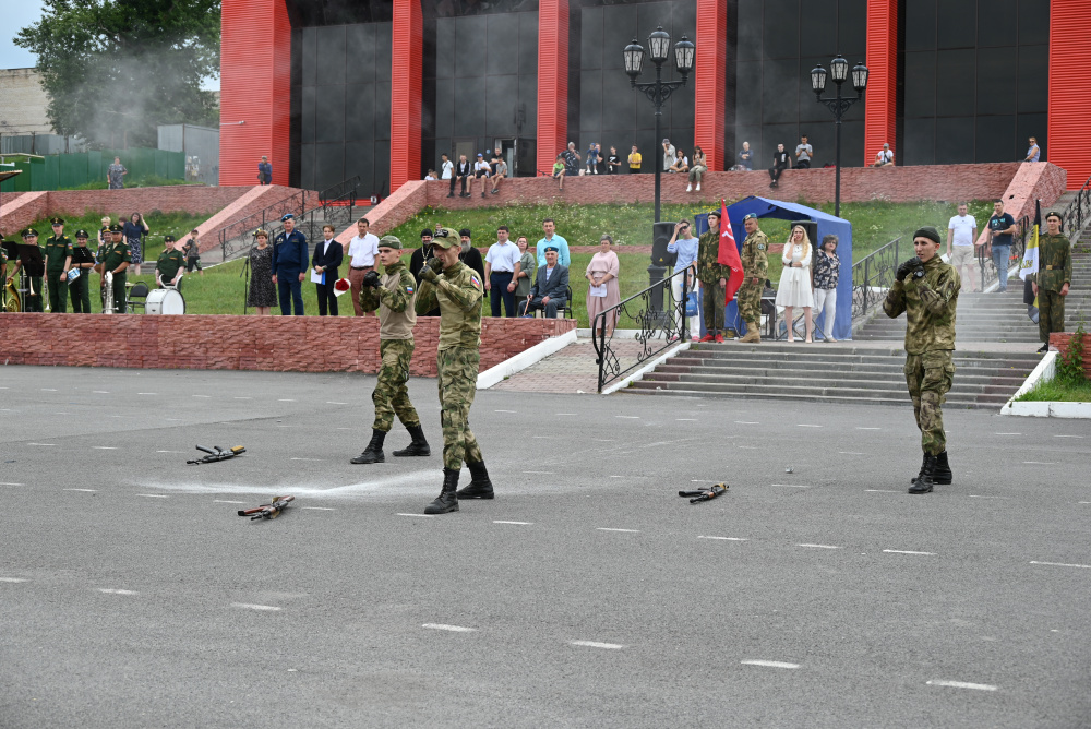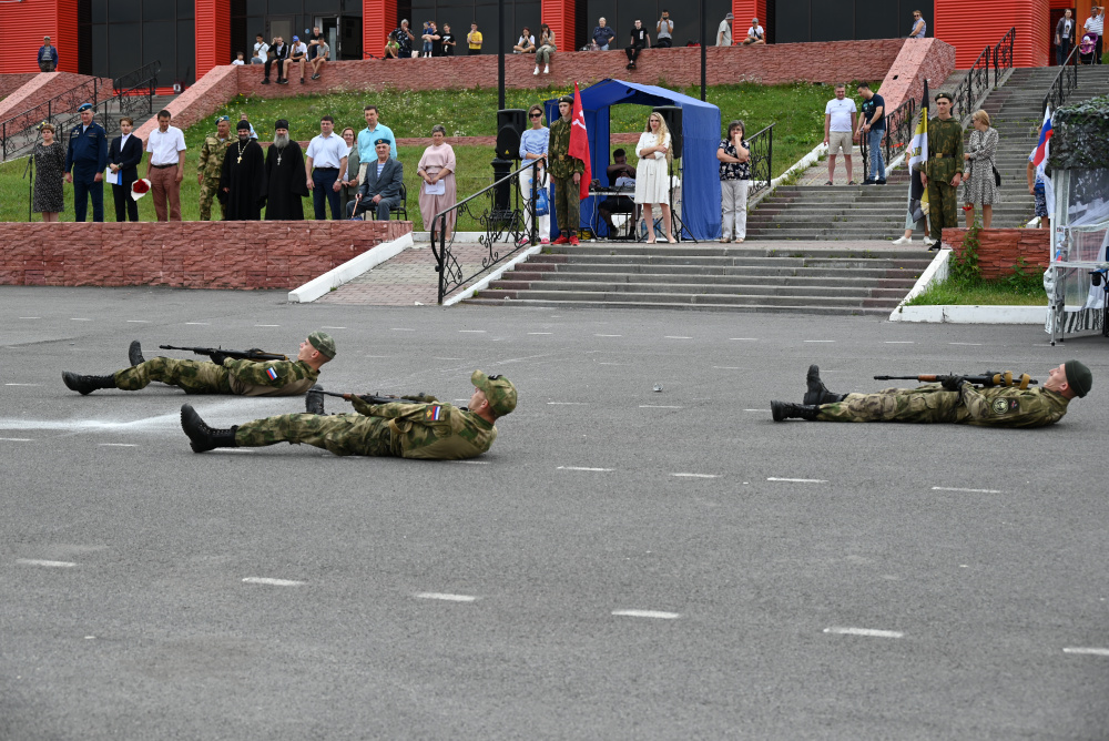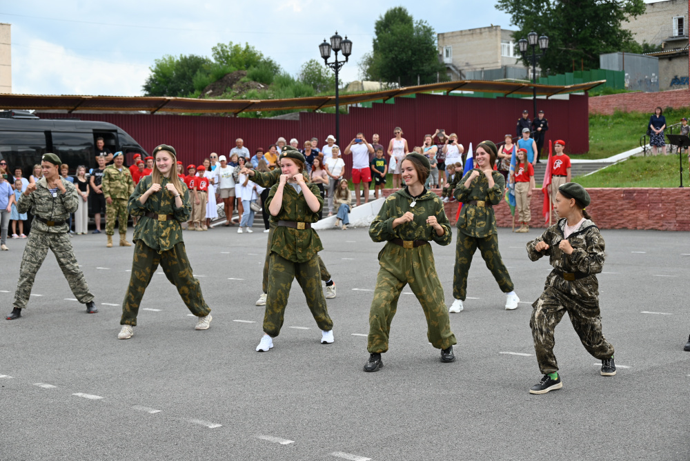 На митинге для десантников и жителей района выступил военный оркестр города Трехгорный-1. Главной фишкой праздника стали показательные выступления юнармейцев и военнослужащих из Трехгорного.
