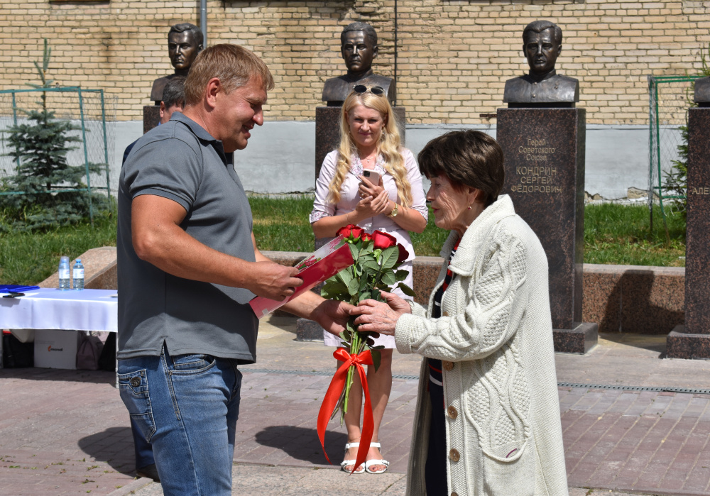 К Почётным гражданам обратились депутаты Елена Константиновна Киселёва, Валерий Александрович Ерёмин, Алексей Геннадьевич Воробьёв, Людмила Геннадьевна Горлова. Они вручили памятные юбилейные адреса виновникам торжества и красивые букеты из алых роз.
