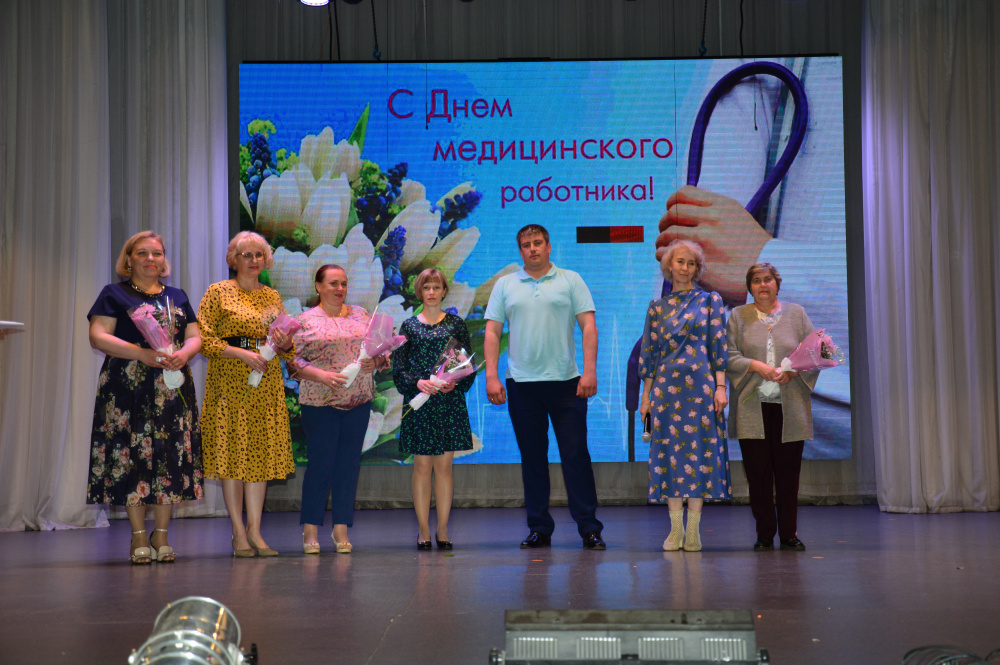 По традиции в зале дворца культуры в преддверии профессионального праздника медицинские работники принимали поздравления, много добрых слов признательности, уважение и благодарности звучало для всех работников, а лучшие из них были отмечены почетными грамотами и благодарностями всех уровней.