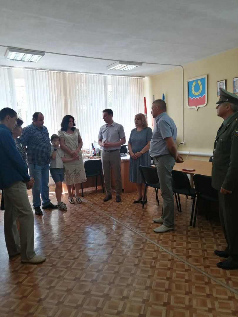 Награду своего сына Константина, Тишева Татьяна Александровна получила из рук районного военного комиссара Владимира Александровича Галкина.