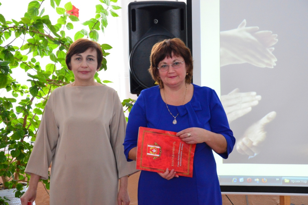 Ольга Похлебаева, начальник организационно-правового отдела Собрания депутатов Катав-Ивановского района наградила почетными грамотами Наталью Дымову и Наталью Кайсарову, учителей школы №1 г.Катав-Ивановска, Людмилу Землянскову, учителя школы №4 Катав-Ивановска, благодарностями - Веру Кочетову, заведующую детского сада «Ромашка» Юрюзани, Людмилу Фёдорову, старшего воспитателя детского сада «Малышок» Катав-Ивановска, Светлану Золотову, музыкального руководителя детского сада «Алёнушка» Катав-Ивановска.