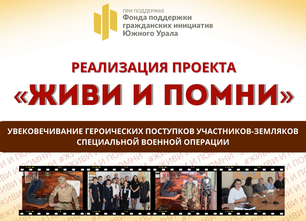 Именно на это направлен проект «Живи и помни», который вновь стал победителем в сентябре 2023 на конкурсе Грантов Губернатора Челябинской области, ранее проект побеждал в этом же конкурсе в январе 2023 года.