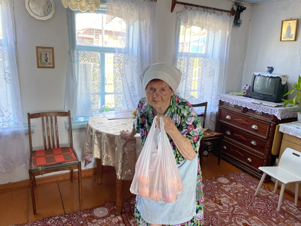 Анна Семёновна Вишнякова встретила нас на крылечке дома. Улыбчивая, открытая. С радостью приняла поздравления, отметив, что очень важно получить их день в день. Горожанам и участникам Великой Отечественной войны она передала большой привет, пожелания здоровья и мира.