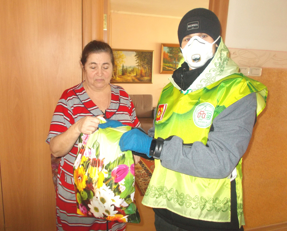 Также депутат передала продовольственный набор ещё одной семье. Хозяйка тут очень скромная, благодарная. Пакет ей доставили волонтёры из движения «Клевер» - Данил Анисимов, учащийся Катав-Ивановского индустриального техникума и Константин Клёпов, сотрудник Комплексного центра социального обслуживания населения.