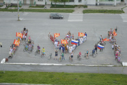 Около сотни юных катавивановцев на роликовых коньках, велосипедах, с колясками и просто пешком прошли колонной по городу и расположились на Центральной площади в форме районного герба