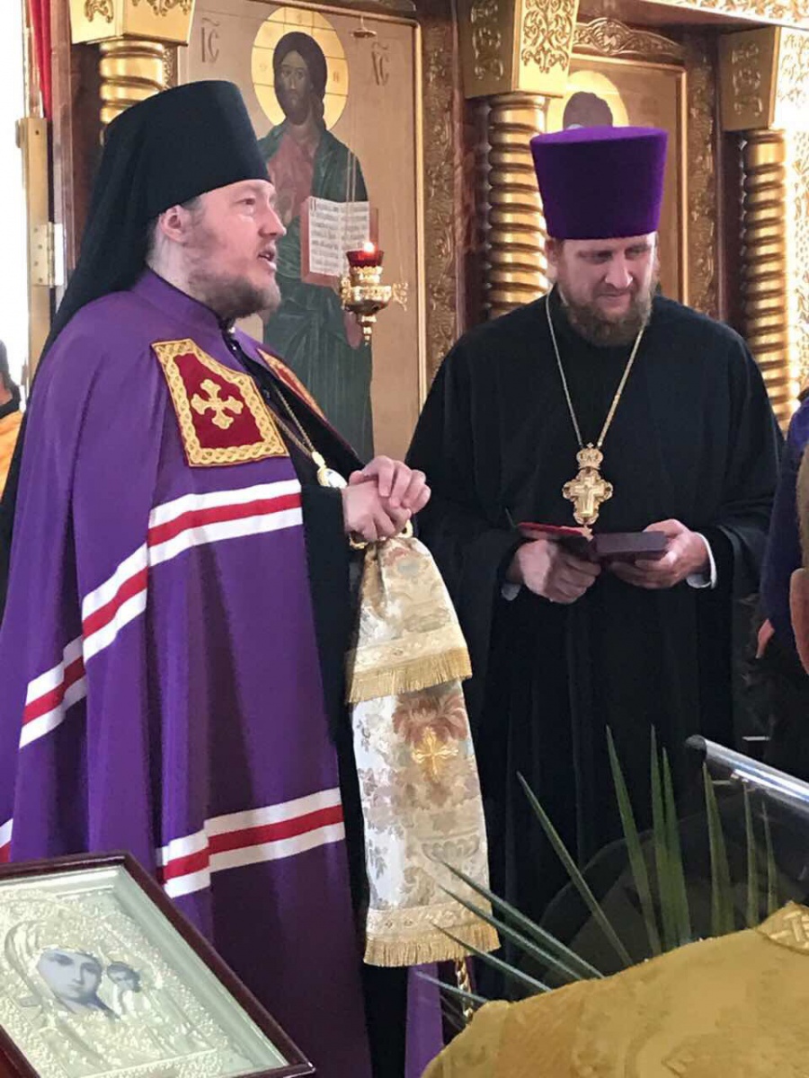 Проповедь перед причастием прочитал протоиерей Дионисий Абрамов. Затем к собравшимся обратился епископ Викентий, он совершил славление в честь апостолов Петра и Павла. С особыми словами благодарности он поздравил настоятеля Петра Назарова и вручил ему наперсный крест, Введенскому храму подарил напрестольный крест.