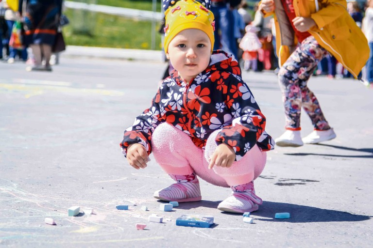 Множество ребят с радостью приняли участие в конкурсе рисунков на асфальте, благодаря чему обычная площадь превратилась ближе к вечеру в яркое буйство красок, позитивное море цветов, животных и различных фигурок.