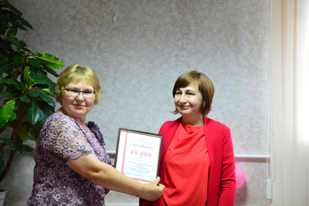 За значительный вклад в содействии занятости населения, реализации мероприятий целевых программ, направленных на стабилизацию ситуации на рынке труда и в связи с 25-летним юбилеем государственной службы занятости Почётной грамотой главы Катав-Ивановского муниципального района награждена главный бухгалтер Лариса Харрасова, Благодарностью - инспектор первой категории Любовь Маркелова.