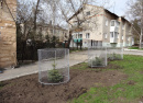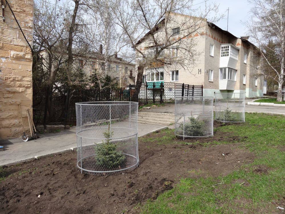 Единогласно пришли к мнению, что здесь нужно спланировать красивую клумбу с ровной газонной травой и посадить ёлочки. Идею реализовали сами. Алексей Бисярин лично выбирал саженцы. Ограждения изготовил Андрей Хортов, сам придумал для них защитную конструкцию от бродячего скота. Культура быта в нашем горном городке среди населения, держащего домашних коз, коров, очень и очень низкая, чего греха таить.