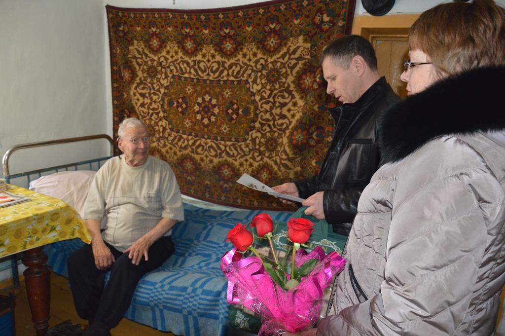Павел Викторович поздравил юбиляра, вручил подарки от главы района и зачитал открытку от Президента Российской Федерации: